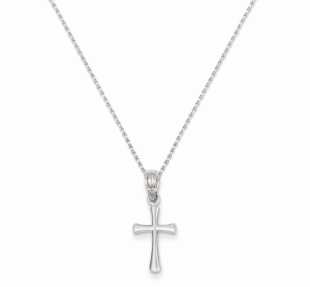14K White Gold Mini Beveled Cross Pendant