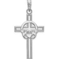 14k White Gold Polished Claddagh Cross Pendant