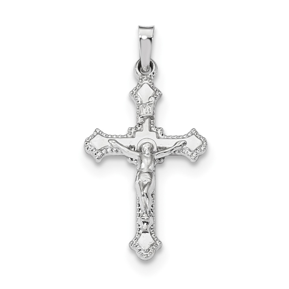 14k White Gold Polished INRI Crucifix Pendant