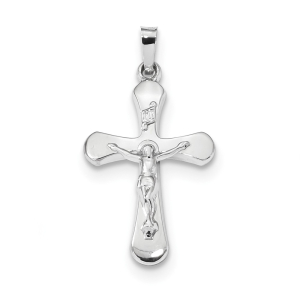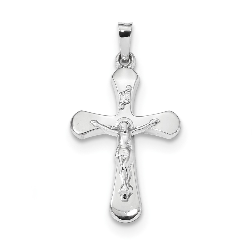 14k White Gold Polished INRI Rounded Crucifix Pendant