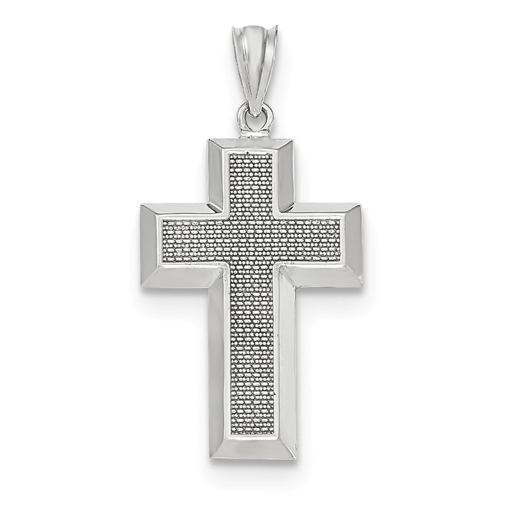 14k White Gold Polished & Textured Cross Pendant
