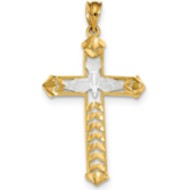 14k White Rhodium w/ Yellow Polished Diamond-cut Dove Cross Pendant