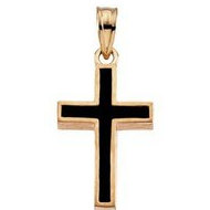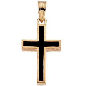 14K Yellow Gold CROSS W/BLACK EPOXY