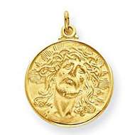 14K Yellow Gold "Ecce Homo" Christ Head Thick Round Charm