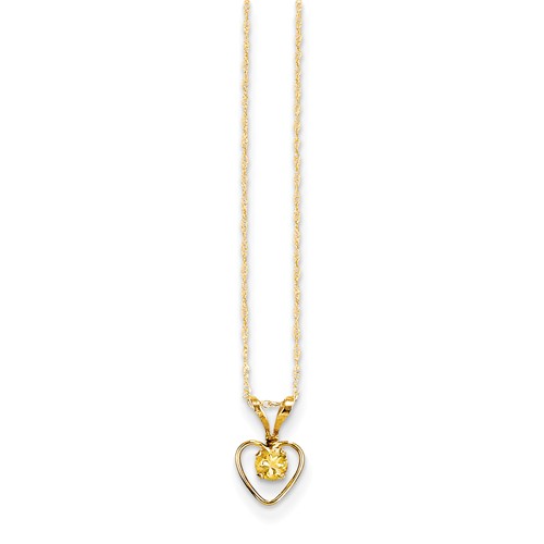 14k Yellow Gold Heart Birthstone Necklace w/ 15" Chain
