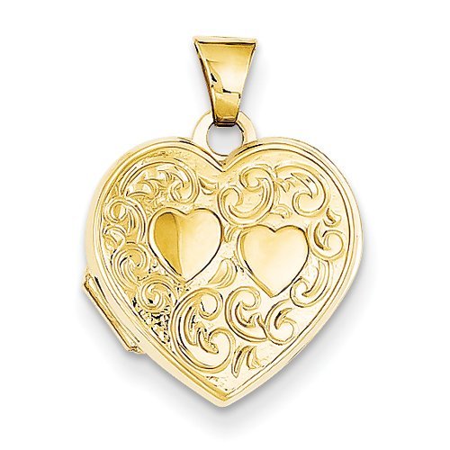 14k Solid Yellow Gold Double Heart Photo Locket
