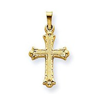 14k Yellow Gold Hollow Fleur de lis Cross Pendant
