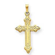 14k Yellow Gold Hollow Fleur de lis Cross Pendant