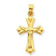 14k Yellow Gold Hollow Reversible Crucifix /Cross Pendant