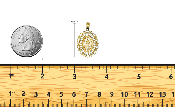 14K Yellow Gold Medium Scalloped Oval Miraculous Medal Cut-Out Pendant