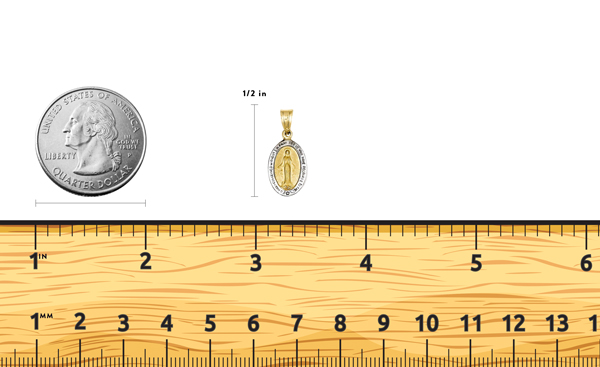 14K Yellow Gold with Rhodium Miraculous Medal Charm