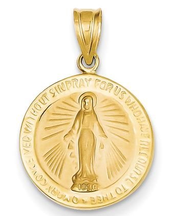 "I've purchased two Miraculous Medals from you at different times. Both times I've been highly satisfied. They came when expected and there were no hidden costs. Actually look so much better than pictures on site. No photo does jewelry any justice. The recent one I got was in sterling silver. I bought it for a friend for Mothers Day as she keeps admiring the one I always wear. Won't she be surprised. Thank you for your meticulous work in creating this fine jewelry."