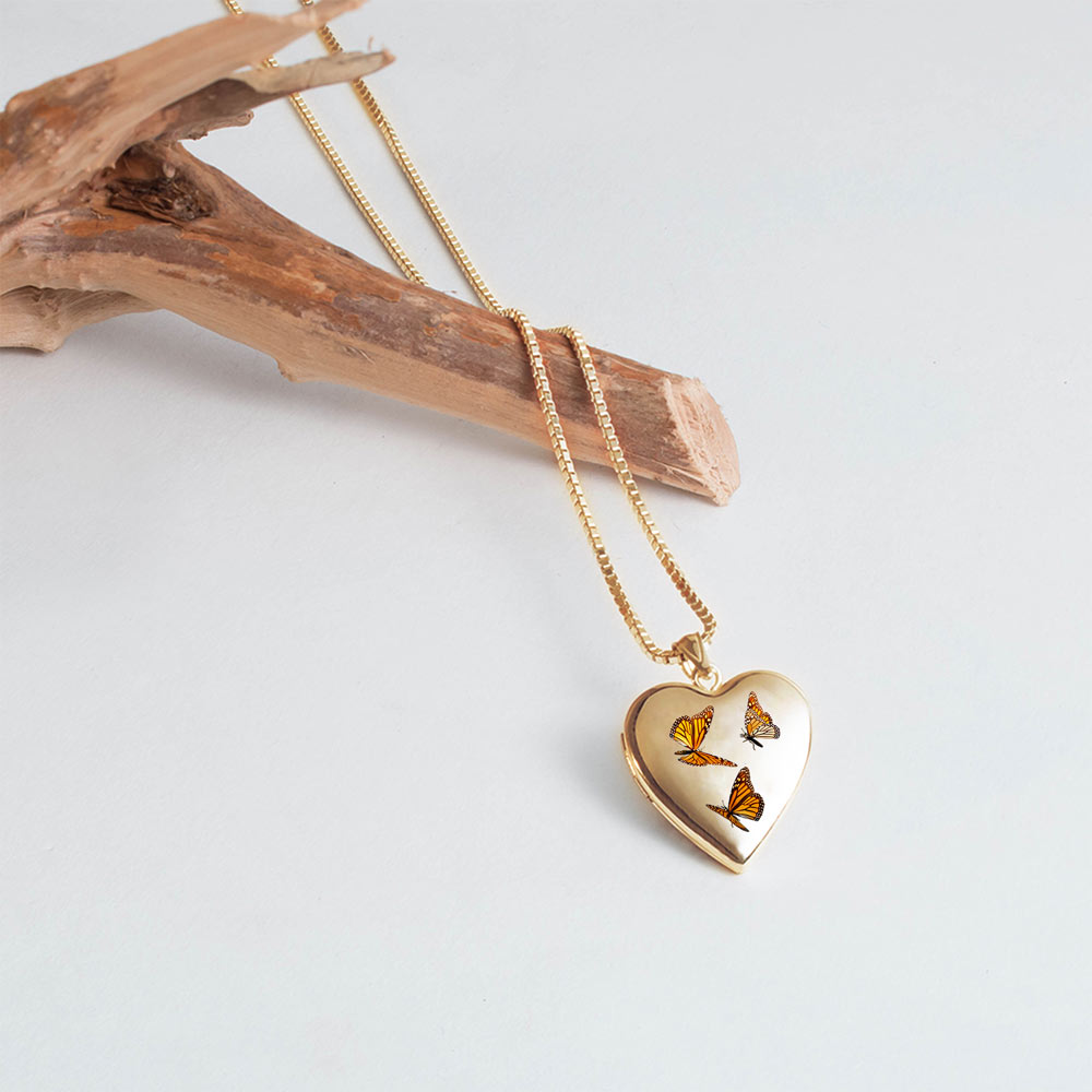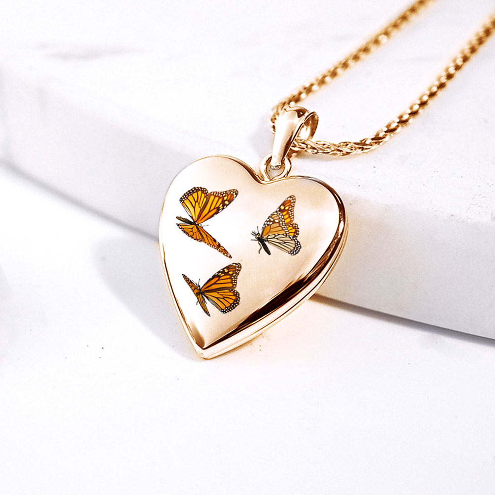 14K Yellow Gold Monarch Butterfly Heart Photo Locket