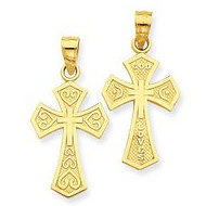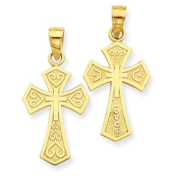 14k Yellow Gold Reversible "God Loves" Cross Pendant