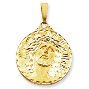 14K Yellow Gold XL "Ecce Homo" Christ Head Diamond Cut Round