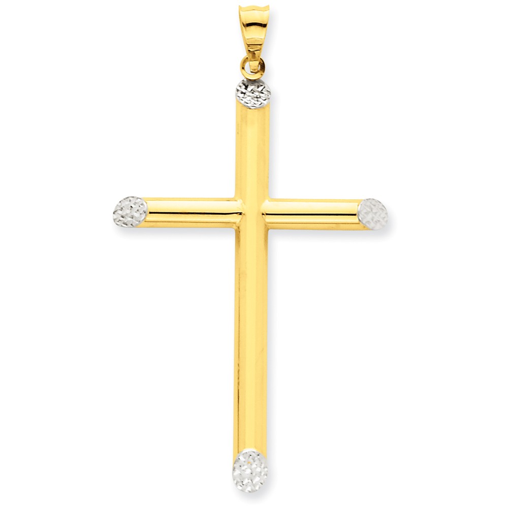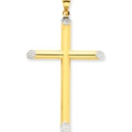 14k Yellow & Rhodium Diamond-cut Cross Pendant