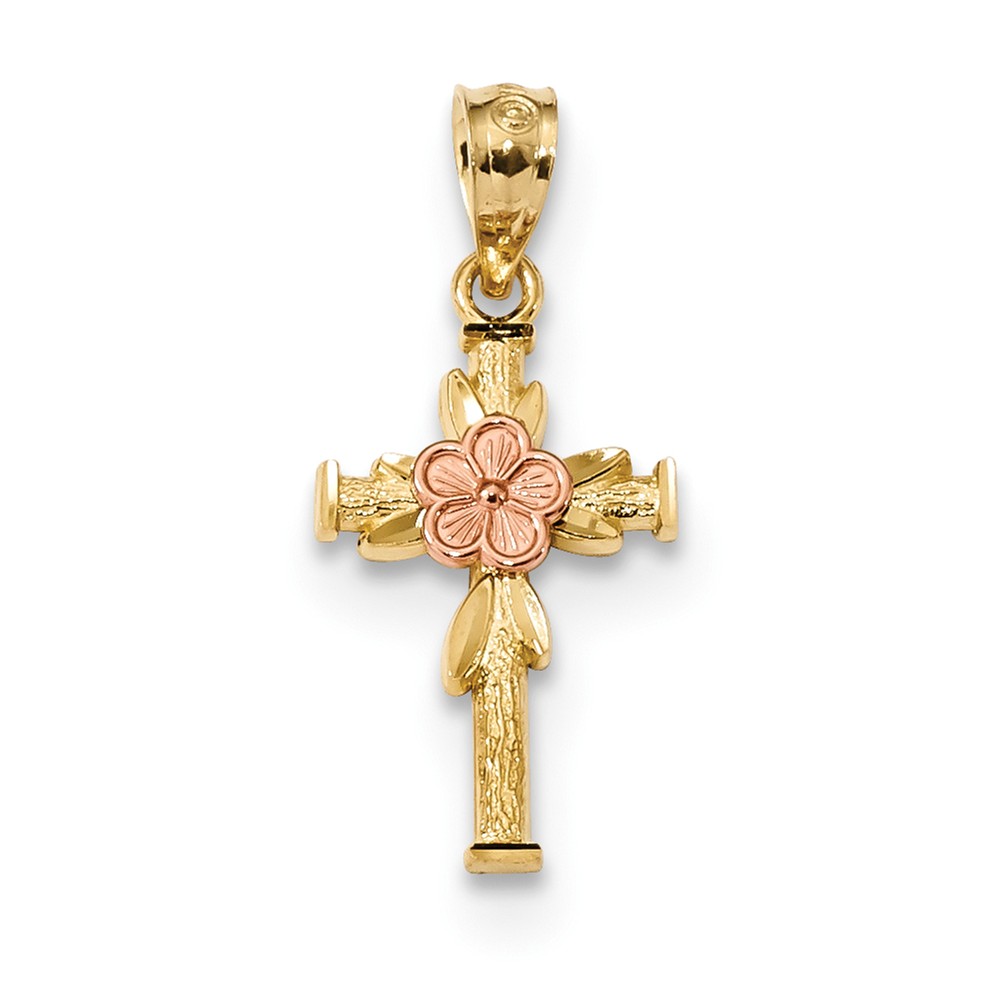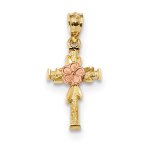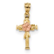 14k Yellow & Rose Polished D/C Cross w/Flower Pendant