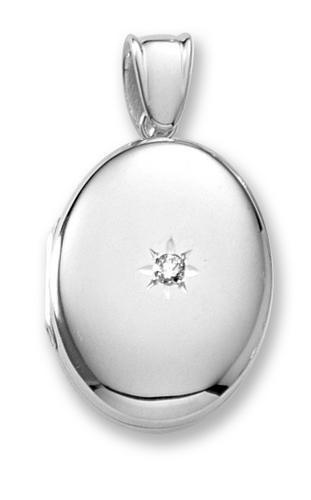 18k Premium Weight White Gold Oval w/ Center Diamond Locket