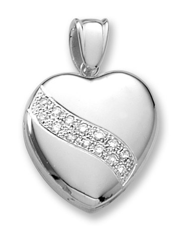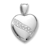 18k Premium Weight White Gold Heart Diamond Sash Heart Locket