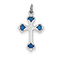 Sterling Silver Blue Enameled Budded Cross Charm