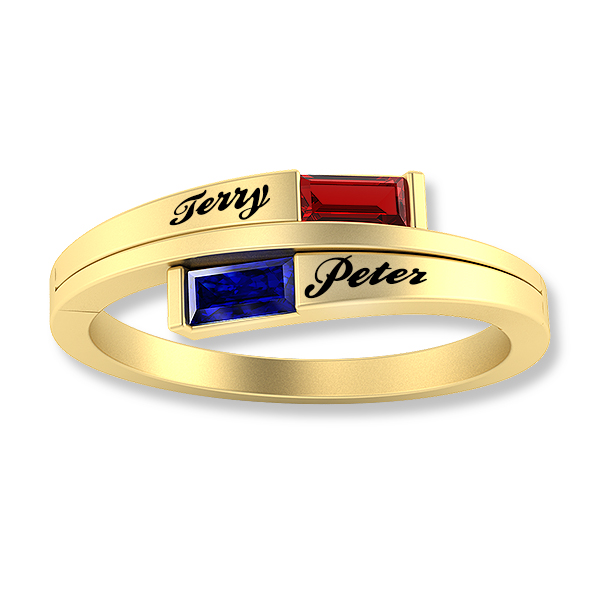 2 Baugette Shaped Birthstone Mother's Personalized Ring