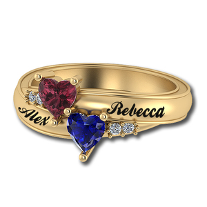 2 Heart Shaped Birthstone Mother's Personalized Ring