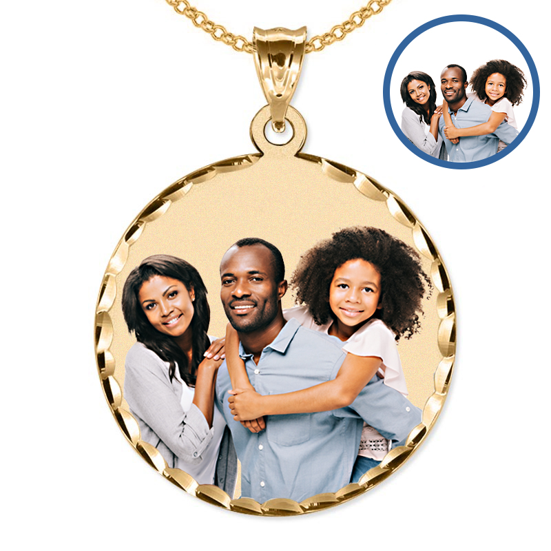 Your photo in full color permanently lasered onto your charm. This process being the most detailed. A protective jewelry enamel is added to every "color laser" pendant to ensure that every day your charm will look as beautiful as the day you took it out of the box.