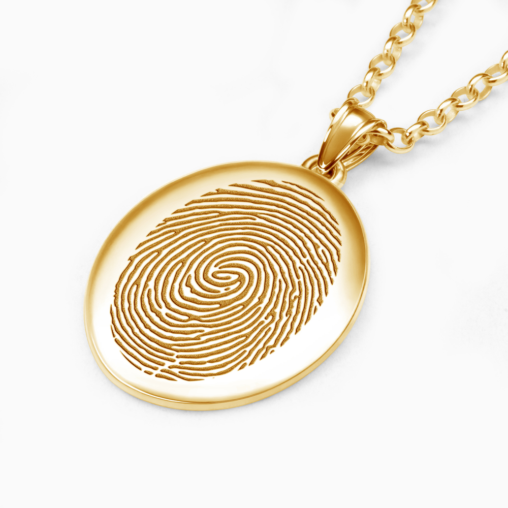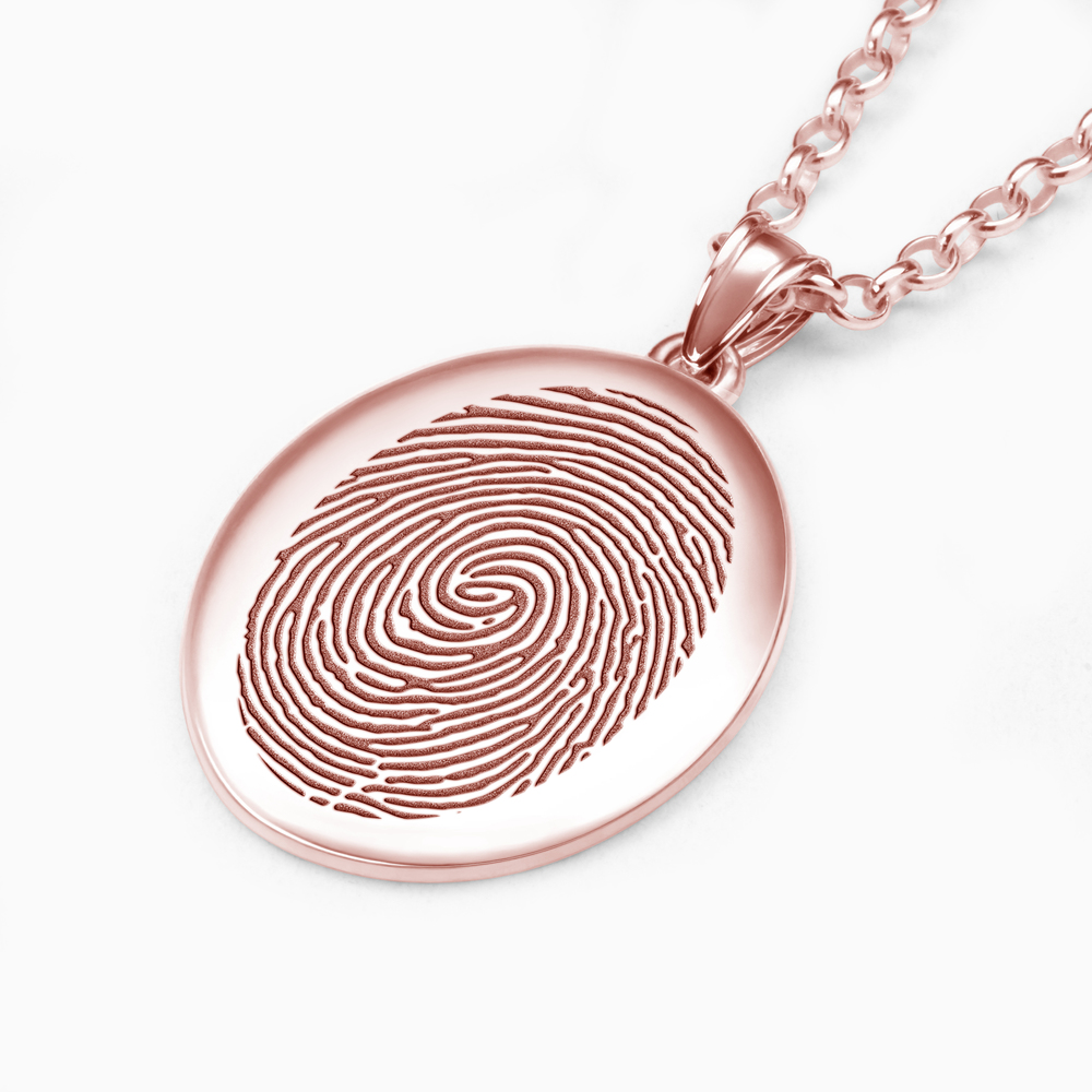 A beautifully crafted 3D oval pendant featuring a highly detailed fingerprint engraving. This elegant and timeless piece captures the unique ridges and patterns of a loved one's fingerprint, creating a deeply personal keepsake. Perfect as a sentimental gift or memorial piece for male or female, the pendant is available in various metals to suit your style. Complete with a smooth, polished surface and a comfortable feel, this 3D oval design is both meaningful and stylish.