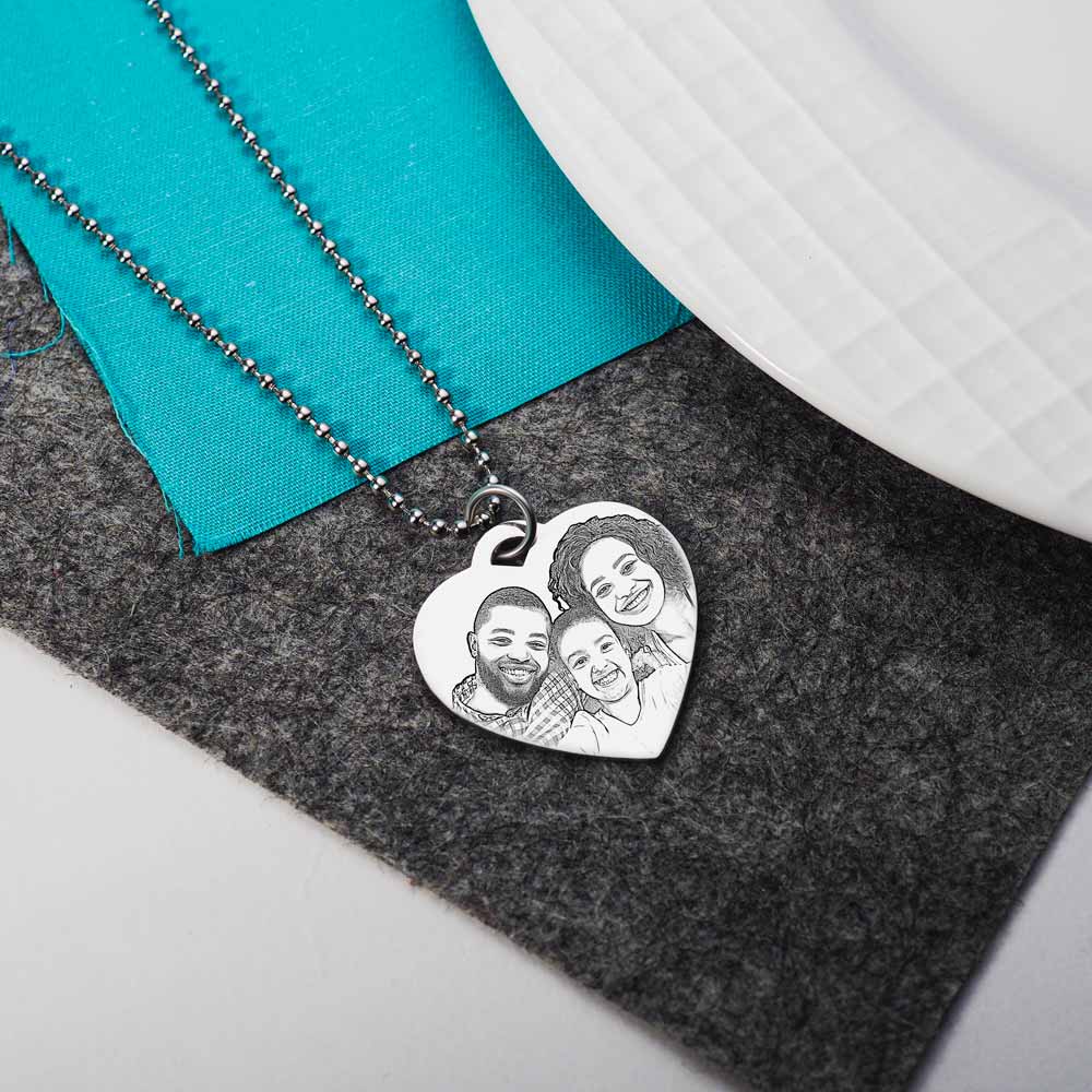 Our exclusive laser etching process brings your photos to life with pinpoint detail. Your photo engraved jewelry will be finished with a classic antique black that enhances the photo to be clear at all angles. All of our laser etched photos are ensured to last a lifetime, and look as beautiful as the day you took it out of the box.