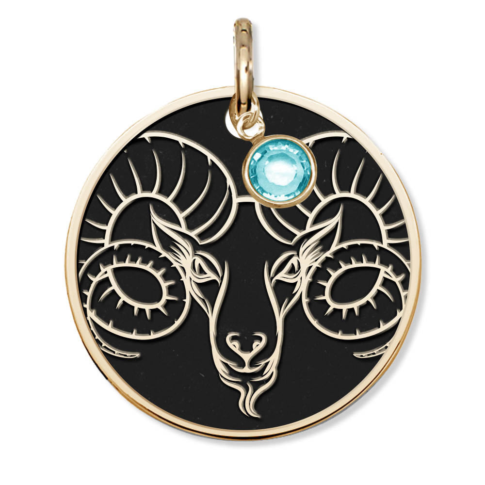 The birthstone that is dangling from the pendant is a Topaz, but it can be switched to any stone upon your request