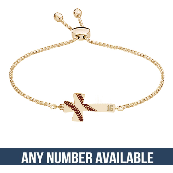 Baseball Stitch Enameled Cross Adjustable Bracelet w/ Number
