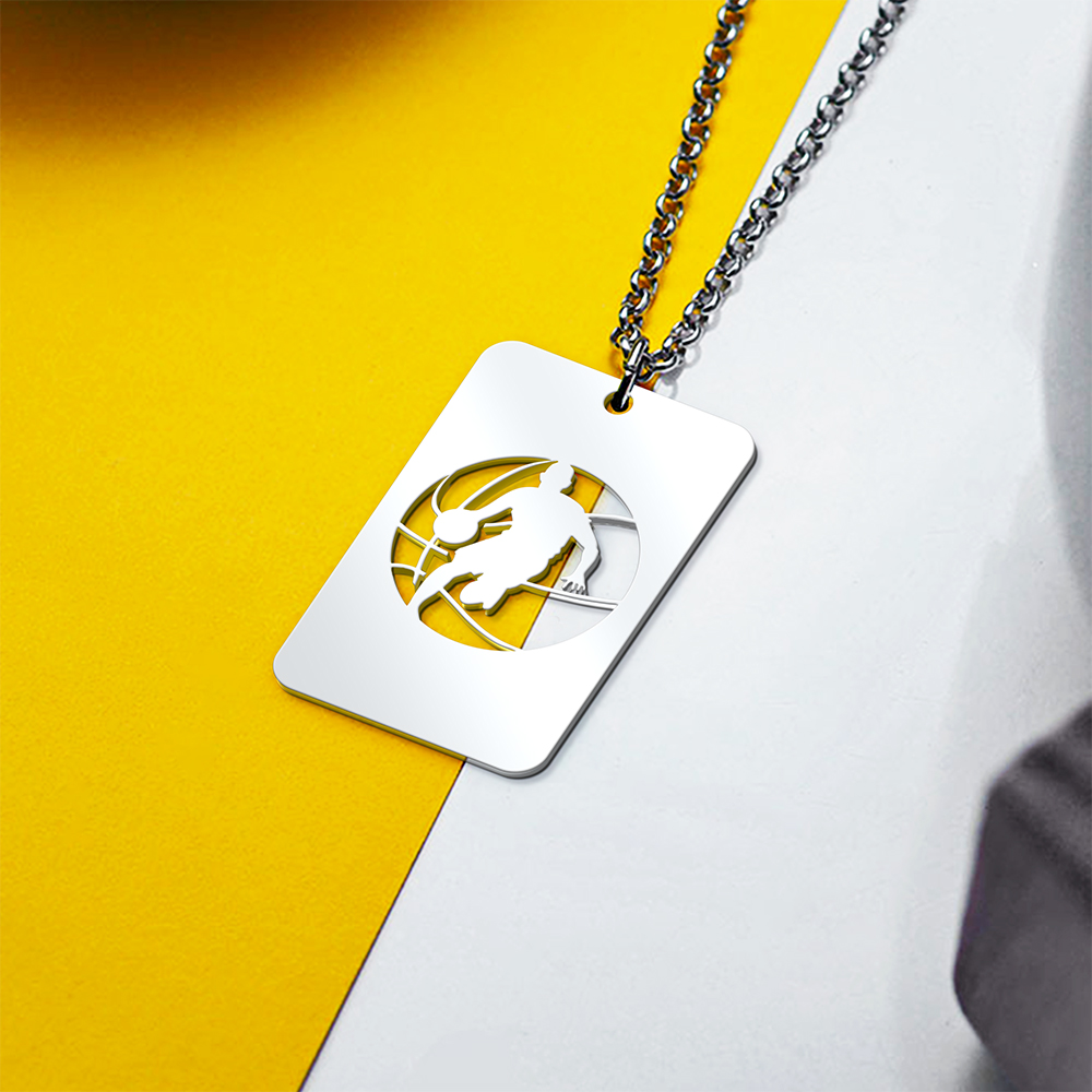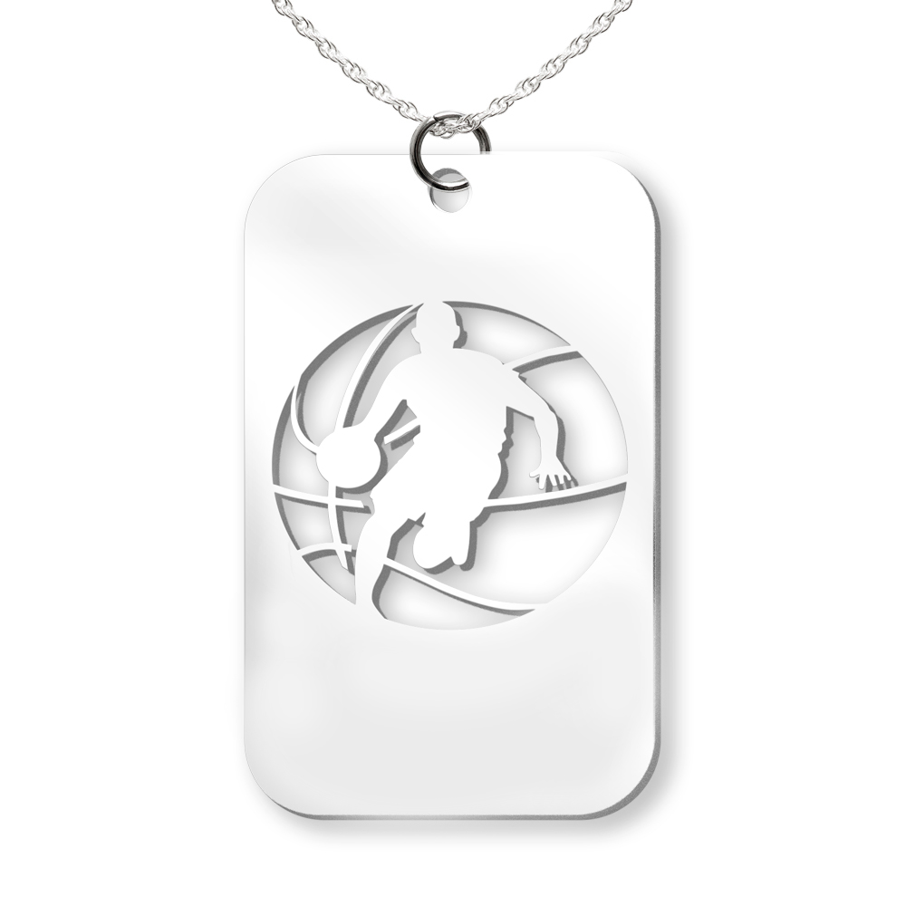 Show off your love for Basketball with this stylish Basketball Player Cut-Out Rectangle Pendant. This unique piece of