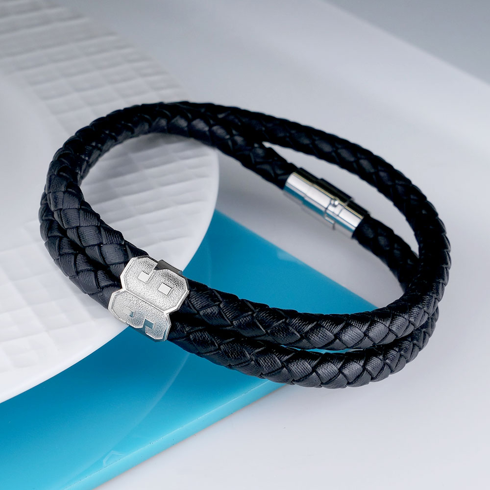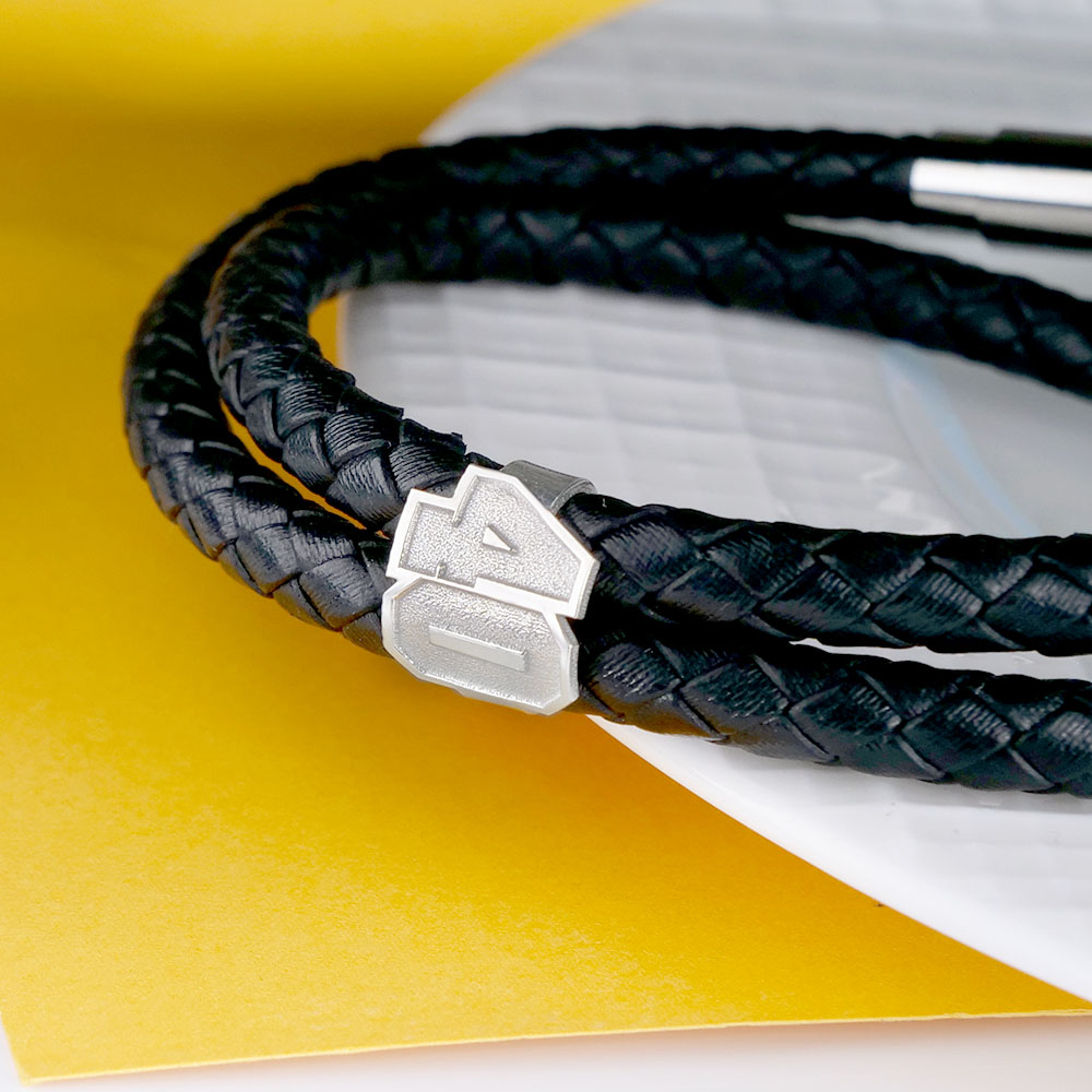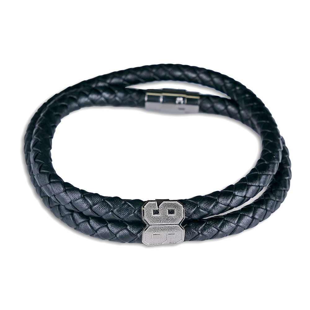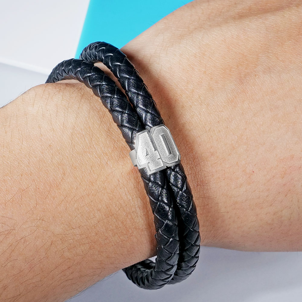 The Black Leather Bracelet with Number Bead is a stylish and contemporary accessory that combines the elegance of black leather with a unique numerical charm. The bracelet features a genuine black leather band that wraps comfortably around your wrist, providing a comfortable fit. The number bead is made of a Solid Sterling Silver. The number can represent anything significant to you, such as a your favorite sports players jersey number, birth-date, lucky number, or a special milestone. This bracelet also makes for a thoughtful and unique gift for your loved ones. Whether it's for Father's Day, a birthday, anniversary, or any other special occasion, the personalized number bead adds a sentimental touch that will be cherished for years to come.