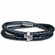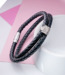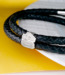 Each bracelet is made of one solid black leather rope that is wrapped twice.