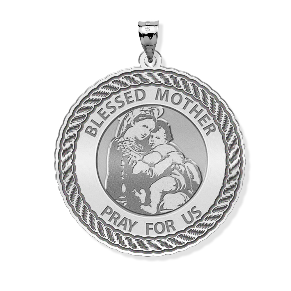 "Blessed Mother" Virgin Mary Round Rope Border Religious Medal