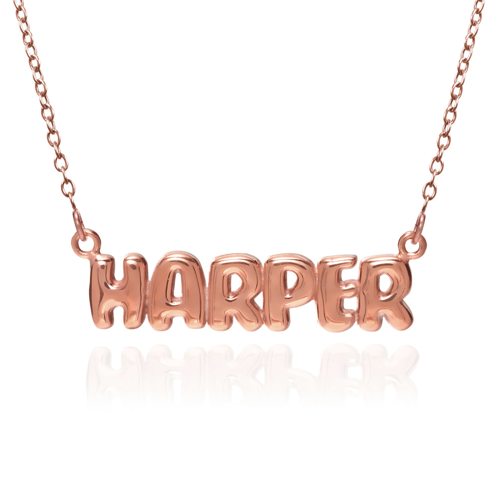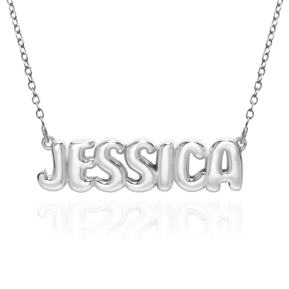 Our trendy bubble name necklace on an adjustable chain is customizable piece of jewelry that features a person's name in