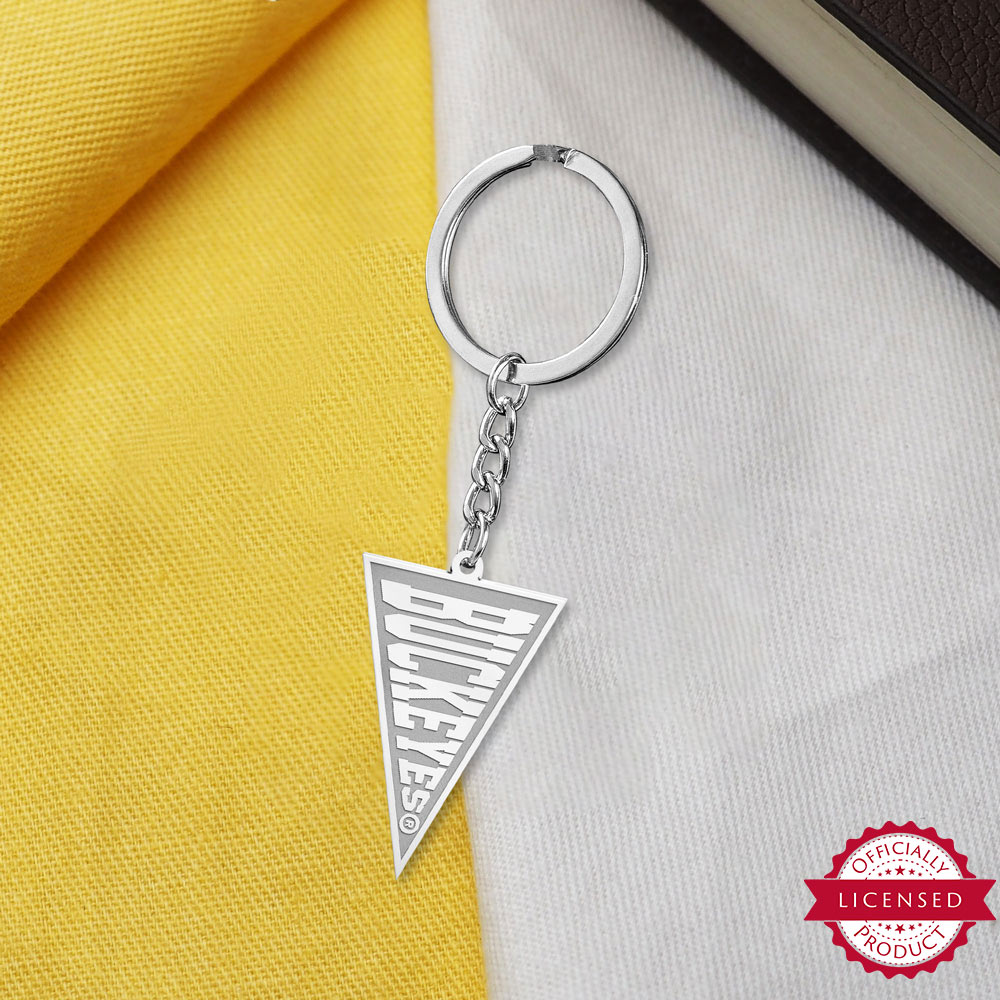 sterling silver and the Buckeyes team name is etched deep with a high-polish finish for the letters. The keychain can be