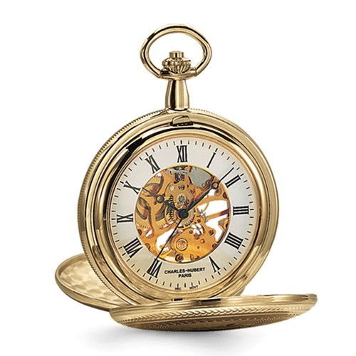 Charles Hubert Gold Tone Two Photo Pocket Watch