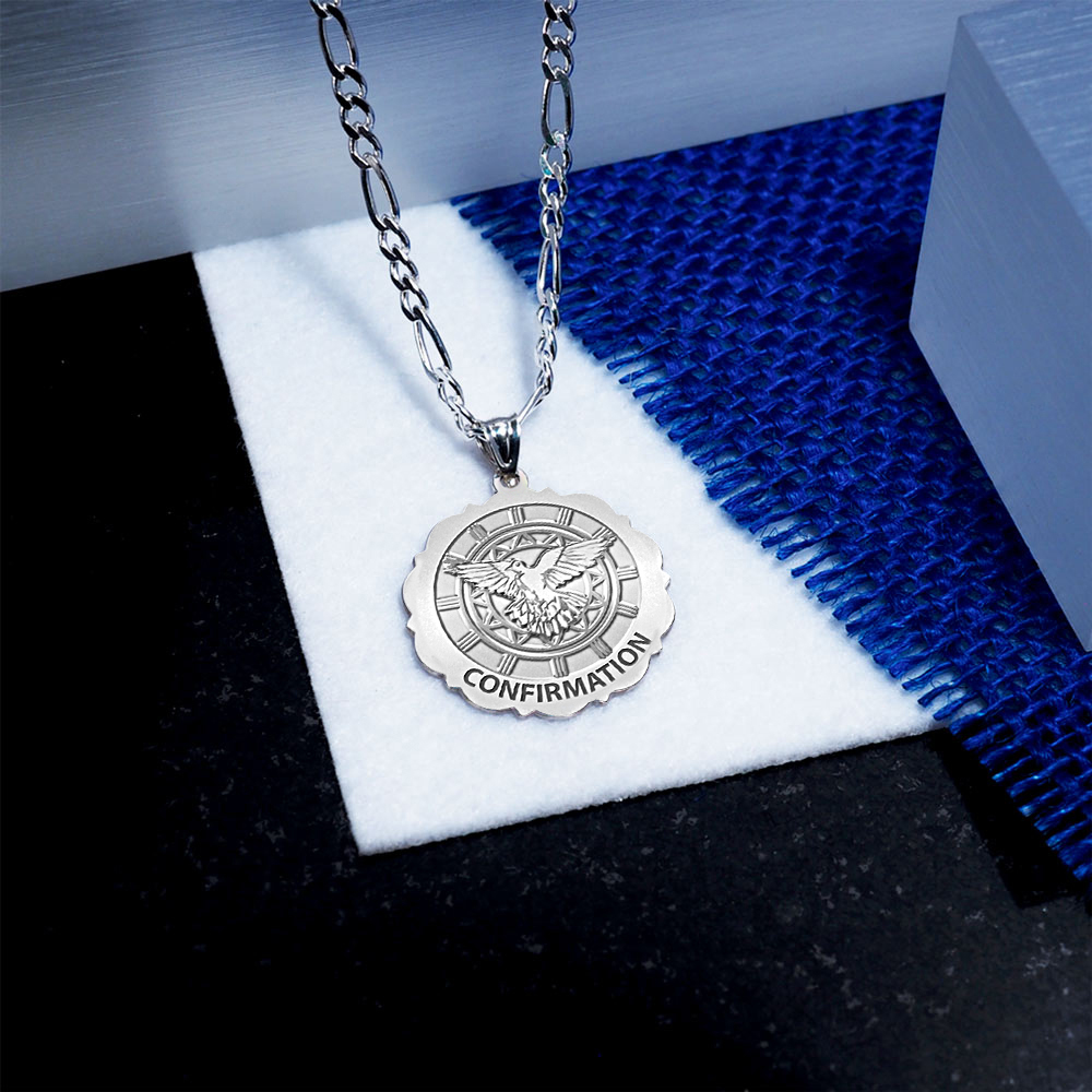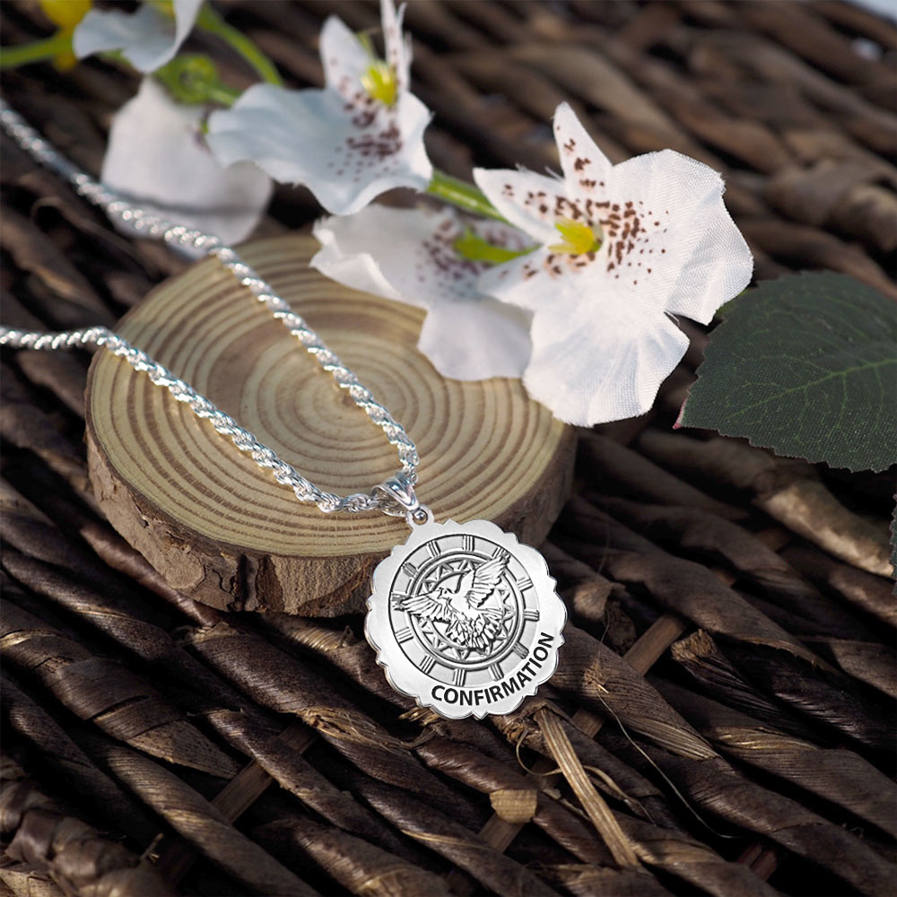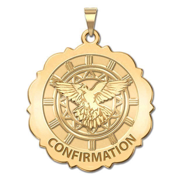 Confirmation Scalloped Round Religious Medal - Holy Spirit Religious Medal "EXCLUSIVE"