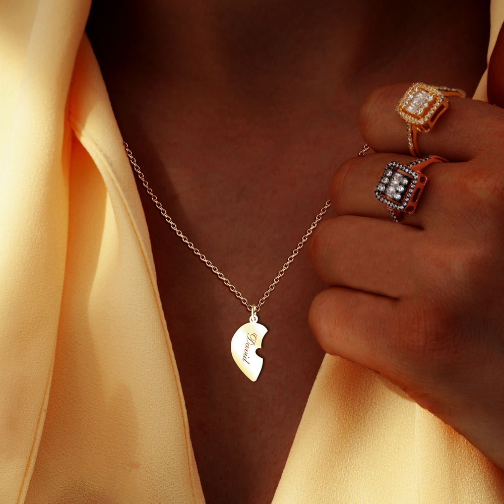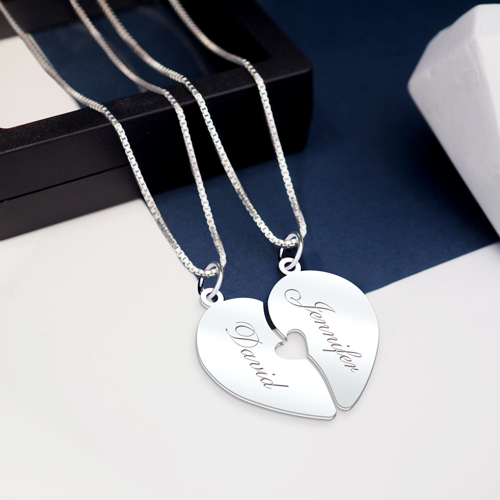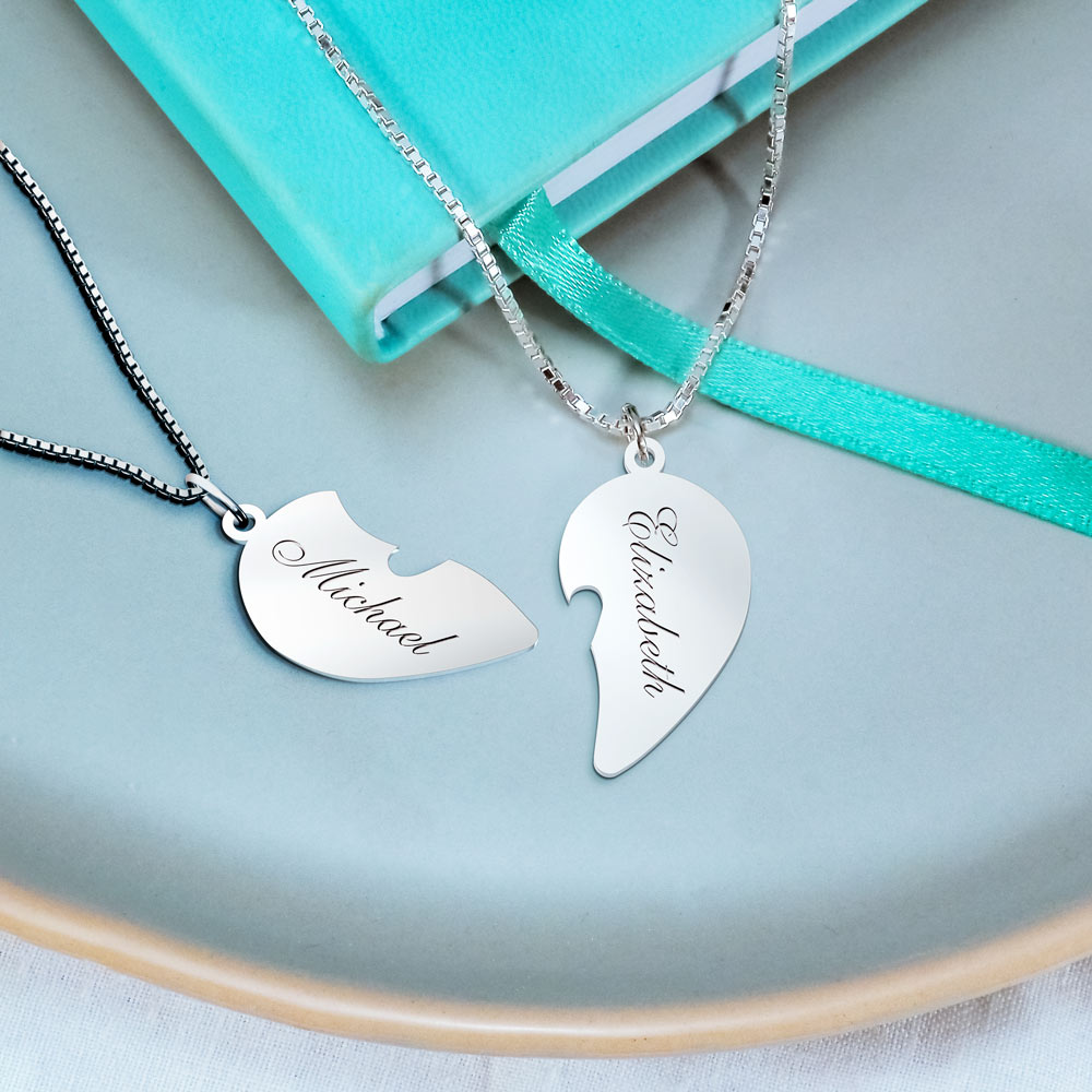 This beautiful Couple's Engravable Two Halves of One Heart Pendant is the ideal gift for the one you love. Available in Sterling Silver, Gold Plated, Rose Gold Plated and 14K Yellow and White Gold this will be sure to bring a smile to anyone's face. Perfect present for Valentine's Day, Mother's Day, Christmas, Birthdays or just because.