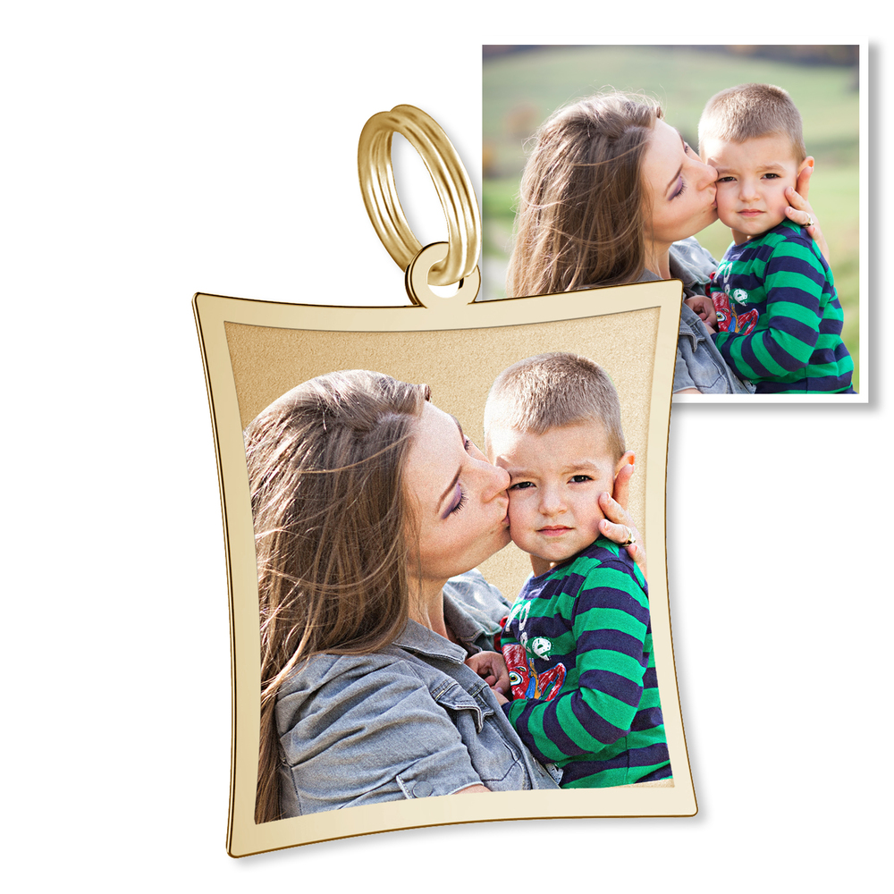 Your photo in full color permanently lasered onto your charm. This process being the most detailed. A protective jewelry enamel is added to every "color laser" pendant to ensure that every day your charm will look as beautiful as the day you took it out of the box.