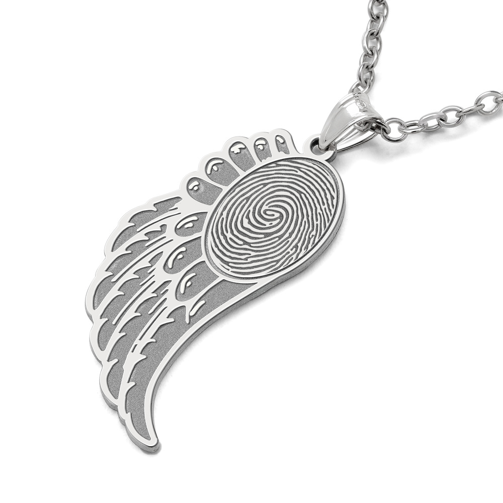 Custom Fingerprint Angel Wing Pendant