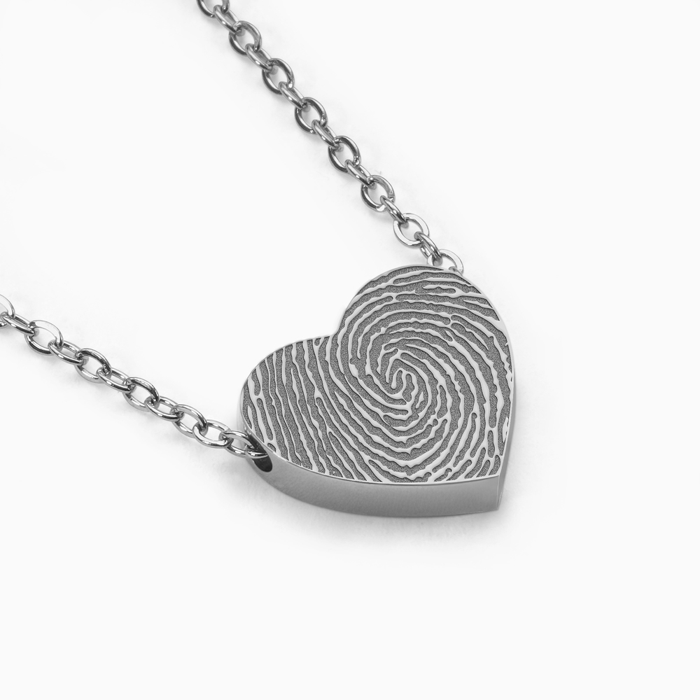 This stainless steel heart pendant features a custom engraving of a loved one's fingerprint, making it a timeless and sentimental gift. Perfect for celebrating meaningful connections, such as anniversaries, birthdays, memorials, or even as a thoughtful keepsake for parents, grandparents, or friends. This piece is a meaningful way to keep someone special close to your heart.