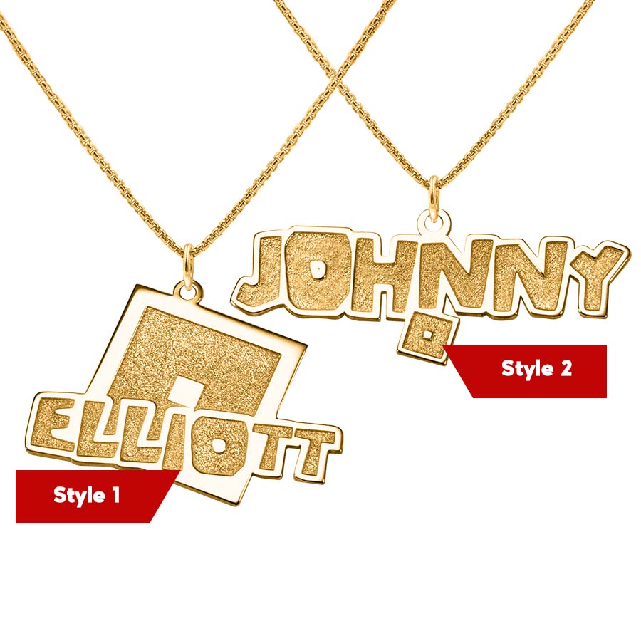 This unique Roblox nameplate is available in two styles, perfect for any little gamer to wear. It has a high polished finished with sandblasted accents