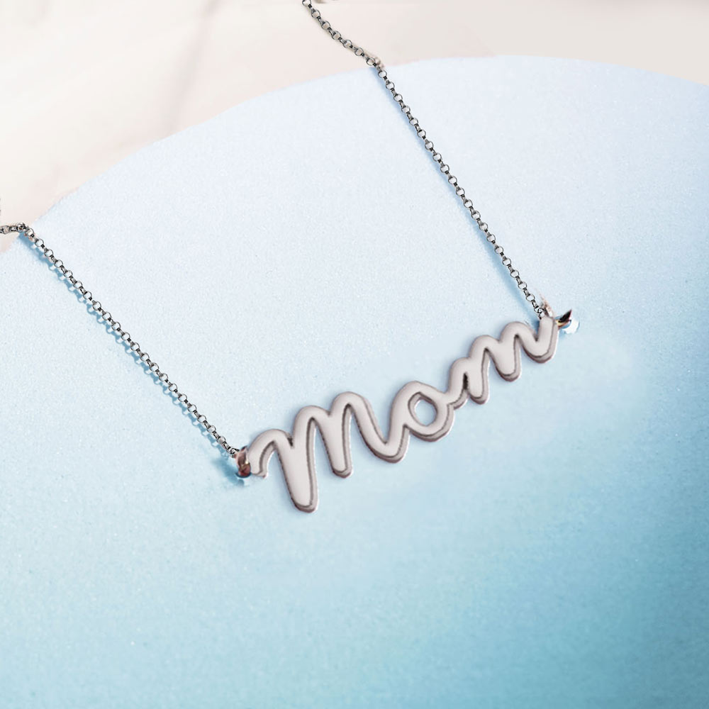 Surprise your mom this Mother's Day with a beautiful Beveled Polished Name Necklace with Chain Included. This personalized