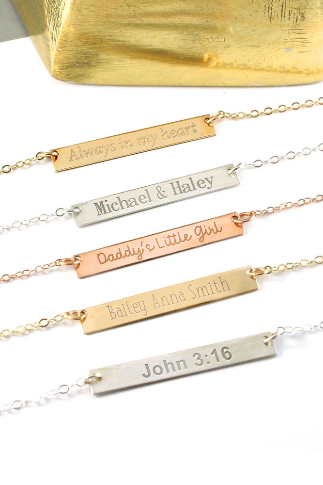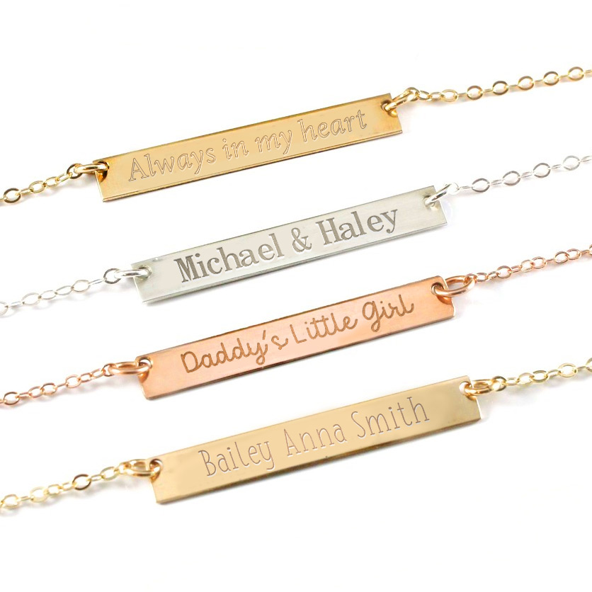 Bar Measure 1/4 Inch tall by 1 1/4 Inch wide which is the perfect width on a females neck.