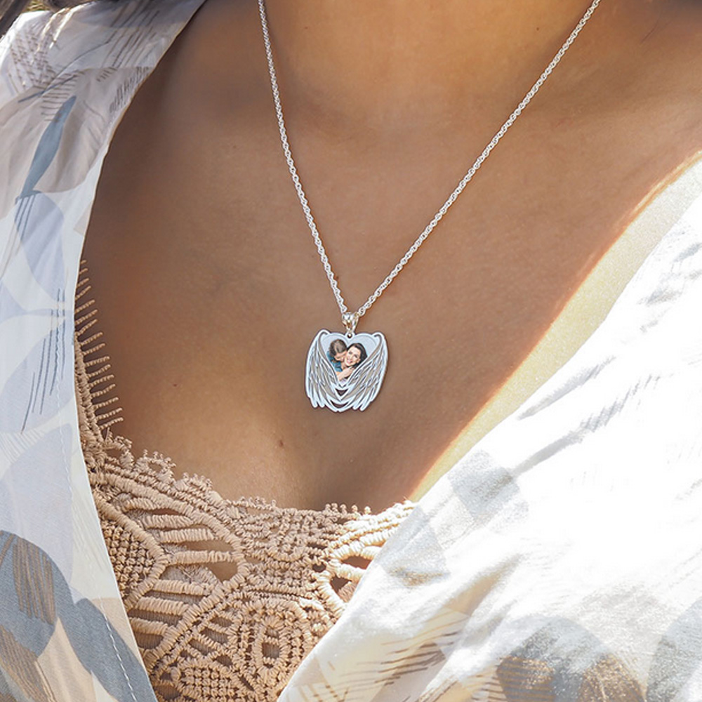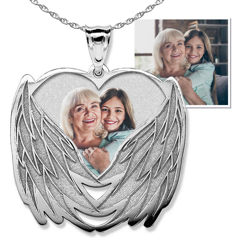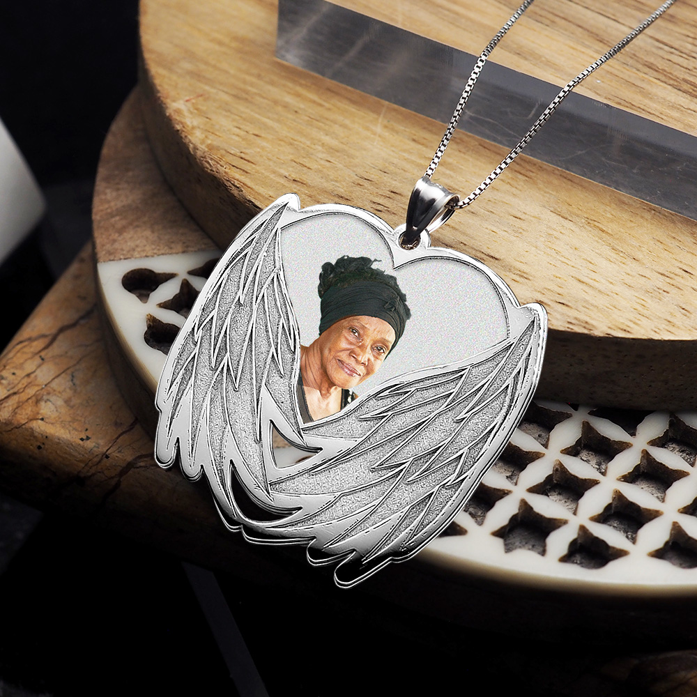 Custom Photo Engraved Angel Wing Charm or Pendant