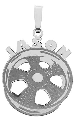 Your custom sports pendant is available in 2 sizes and in 14K Solid Yellow Gold, 14K Solid White Gold, Or Sterling Silver. Most can handle a name, team name, and even the number the players wear.
