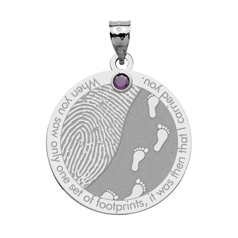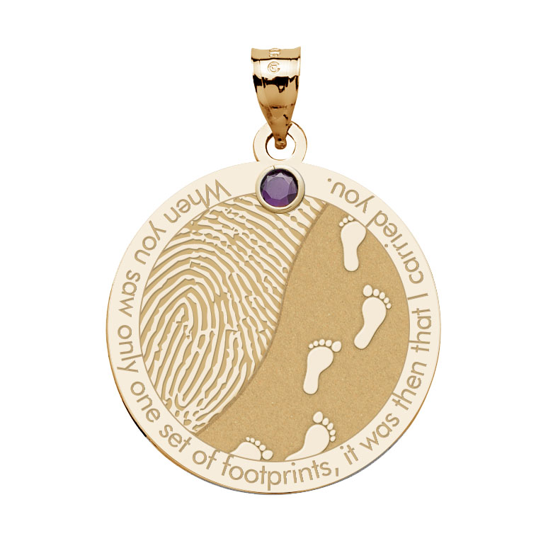 Custom Fingerprint Round Charm or Pendant with Footprints in the Sand quote
