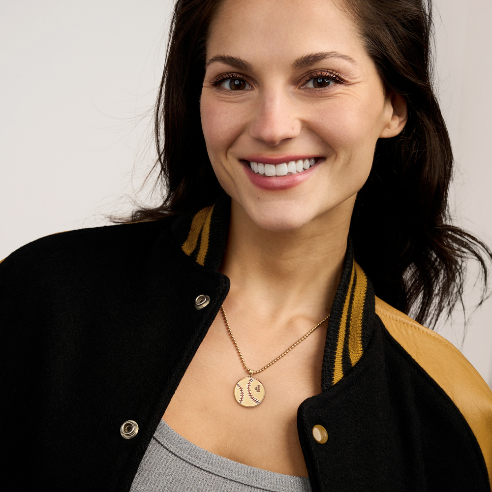 Your custom sports pendant is available in 3 sizes and in 14K Solid Yellow Gold, 14K Solid White Gold, Or Sterling